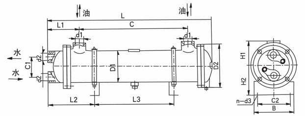 GL冷卻器體積小,重量輕、冷卻效果好,便于維護(hù)檢修;GLCQ 型的換熱管采用紫銅翅片管,熱交換系數(shù)>300kcal/m2·h·℃;GLLQ型采用裸(光)管,冷卻器熱交換系數(shù)>200kcal/m2·h·℃。GLCA冷卻器型與GLC冷卻器型外形尺寸相同,油、水口有螺紋和法蘭兩種。